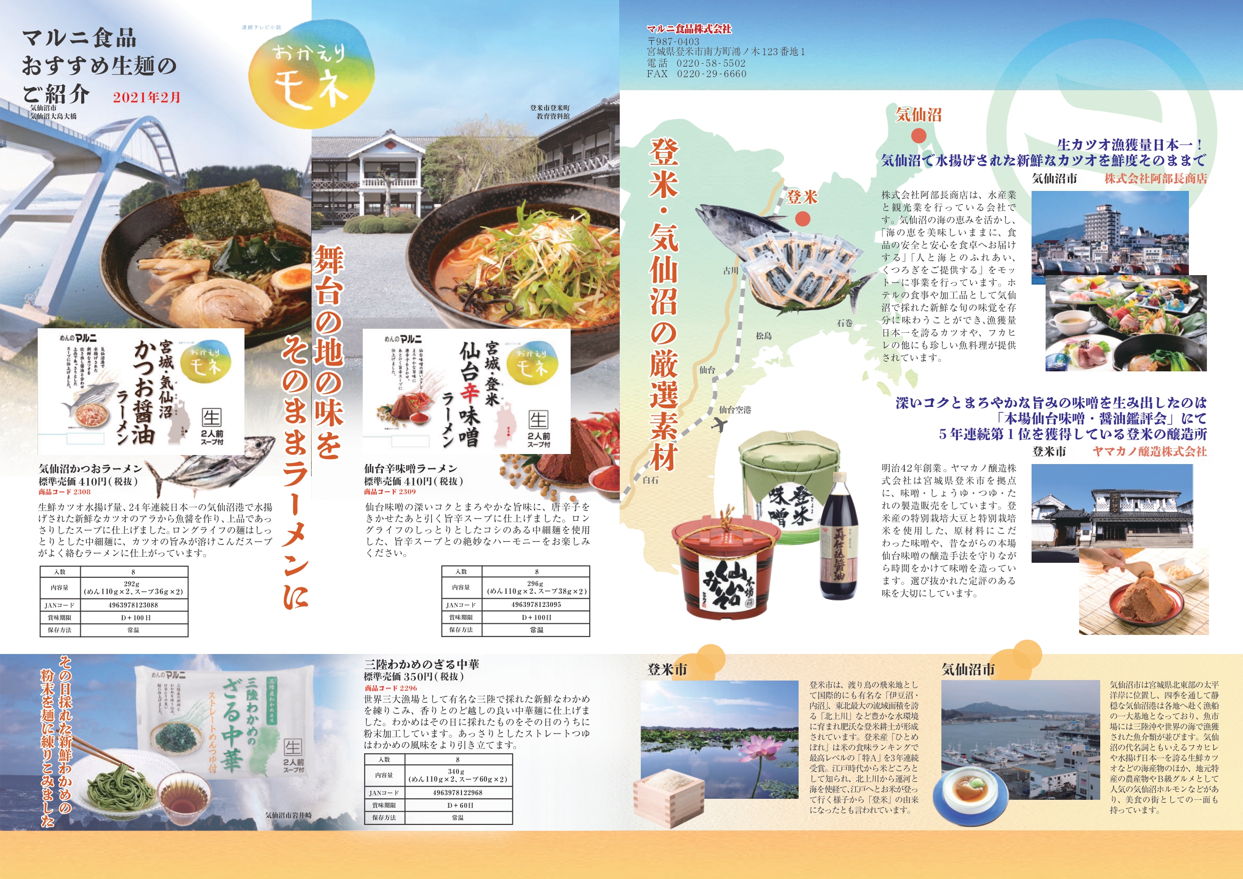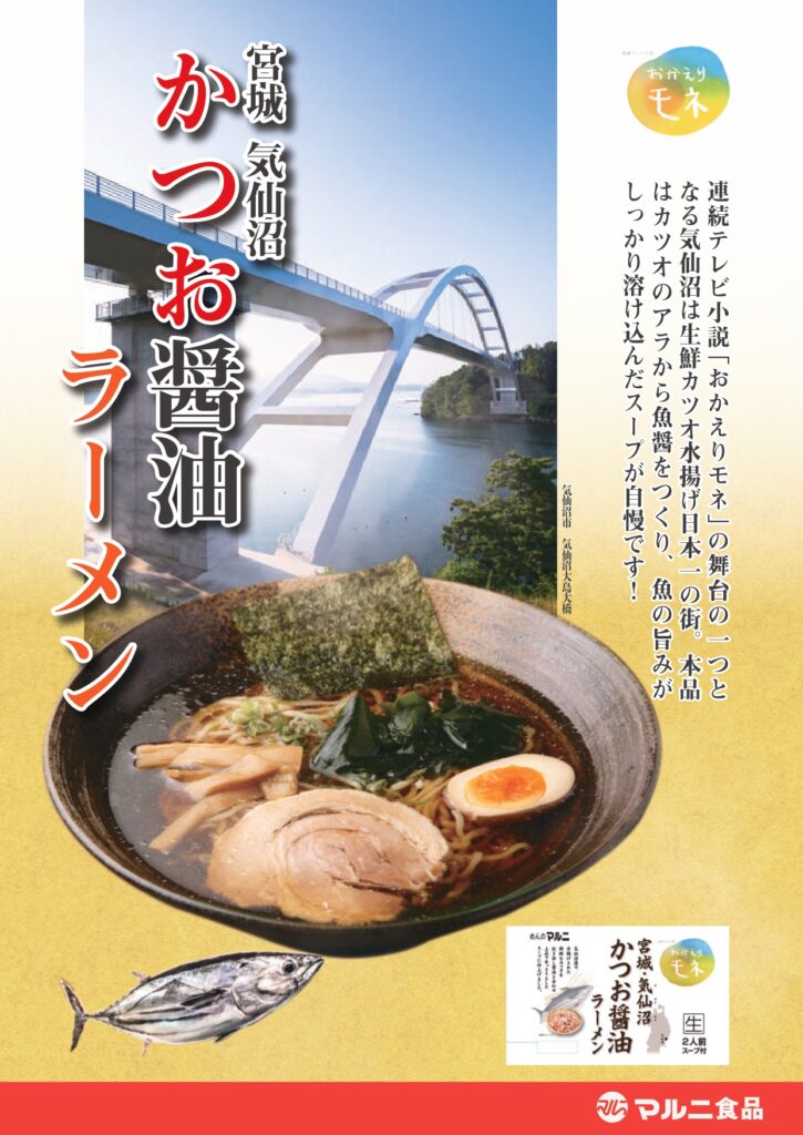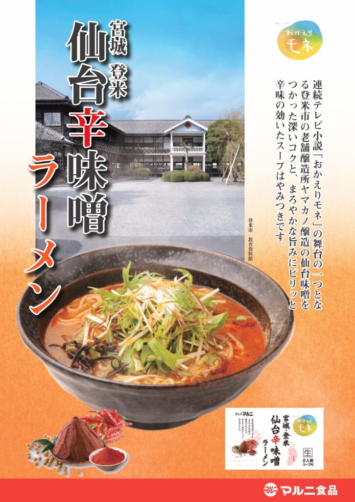 登米市のマルニ食品のインハウスデザイナーとしておかえりモネ放送記念のコラボ商品の販促物を制作しました。