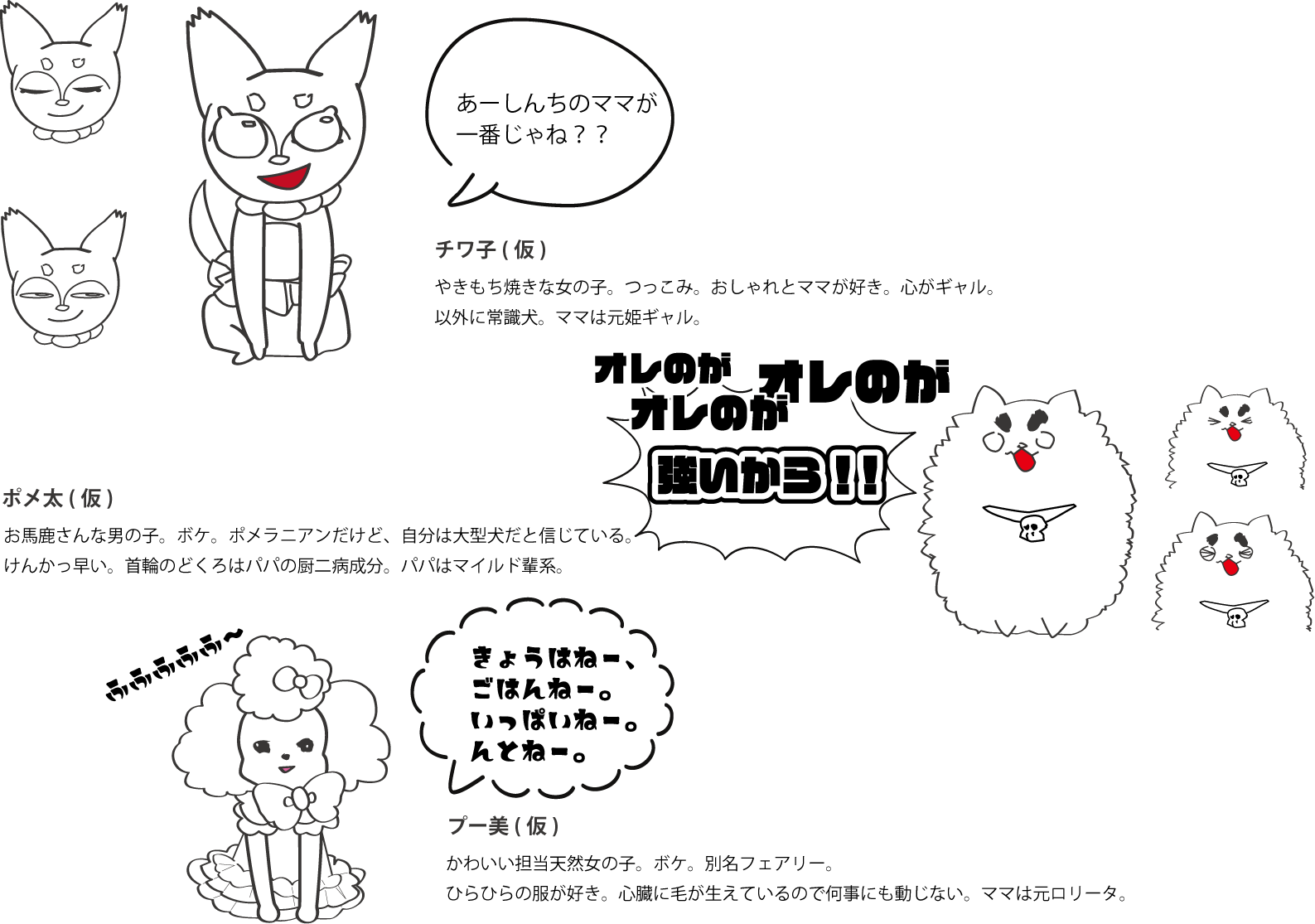 印象に残るCMにするため、キャラクターデザインは服装や性格など個性強めに作成しました。